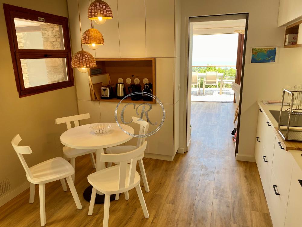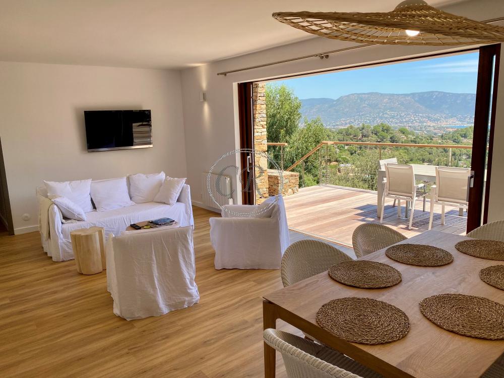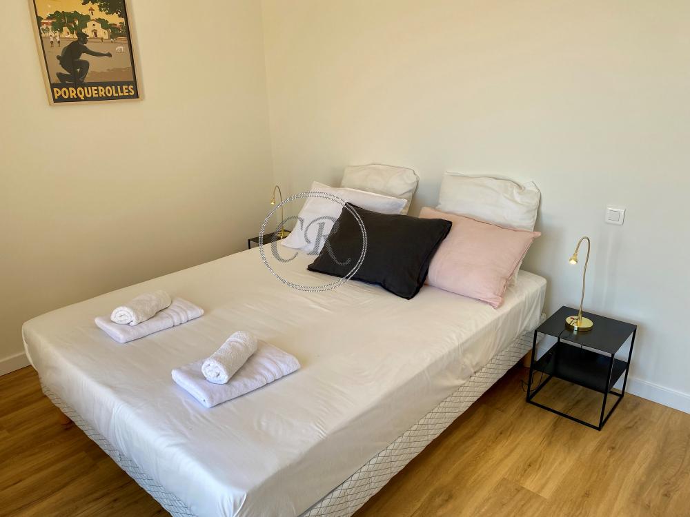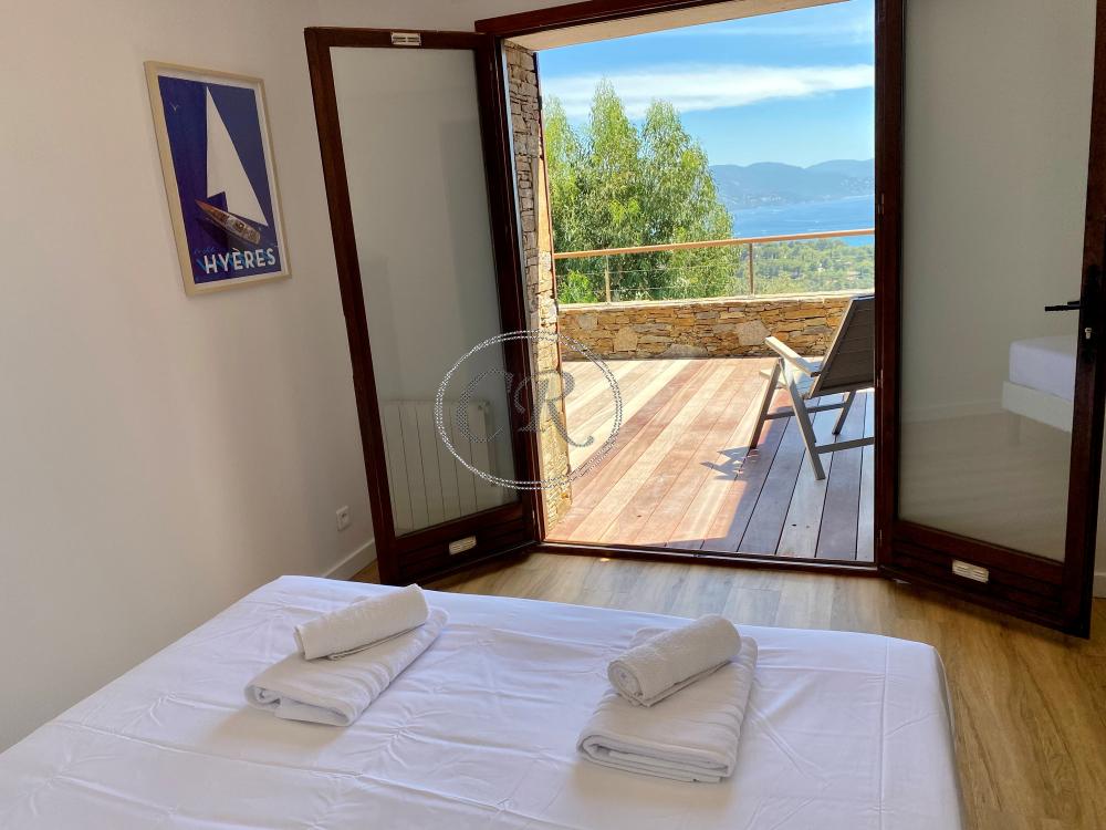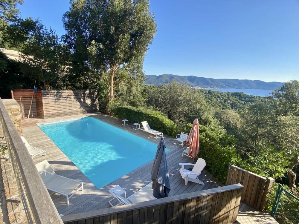 Located in the Domaine du Gaou-Bénat, this magnificent villa of 115 m², completely renovated, overlooks the Mediterranean. With its panoramic view, its beautifully wooded grounds of 1510 m² and its large swimming pool of 11m20 x 4m80 you will be able to fully enjoy your holidays. It is composed of 4 bedrooms and 3 bathrooms, a living room and a fully equipped and independent kitchen. It can accommodate 8 people. All rooms are air-conditioned. For your leisure, a boules pitch and a ping-pong table are at your disposal. The seaside offers you all kinds of nautical activities: jet skiing, boat rental, parasailing, scuba diving, water skiing, and the possibility of discovering the golden islands . For your evenings, the night market, and many nocturnal activities in Lavandou and Bormes les mimosas. The interior of the grounds, him, offers to you splendid pedestrian excursions, ballads in the bicycles. Our team will be happy to inform you!